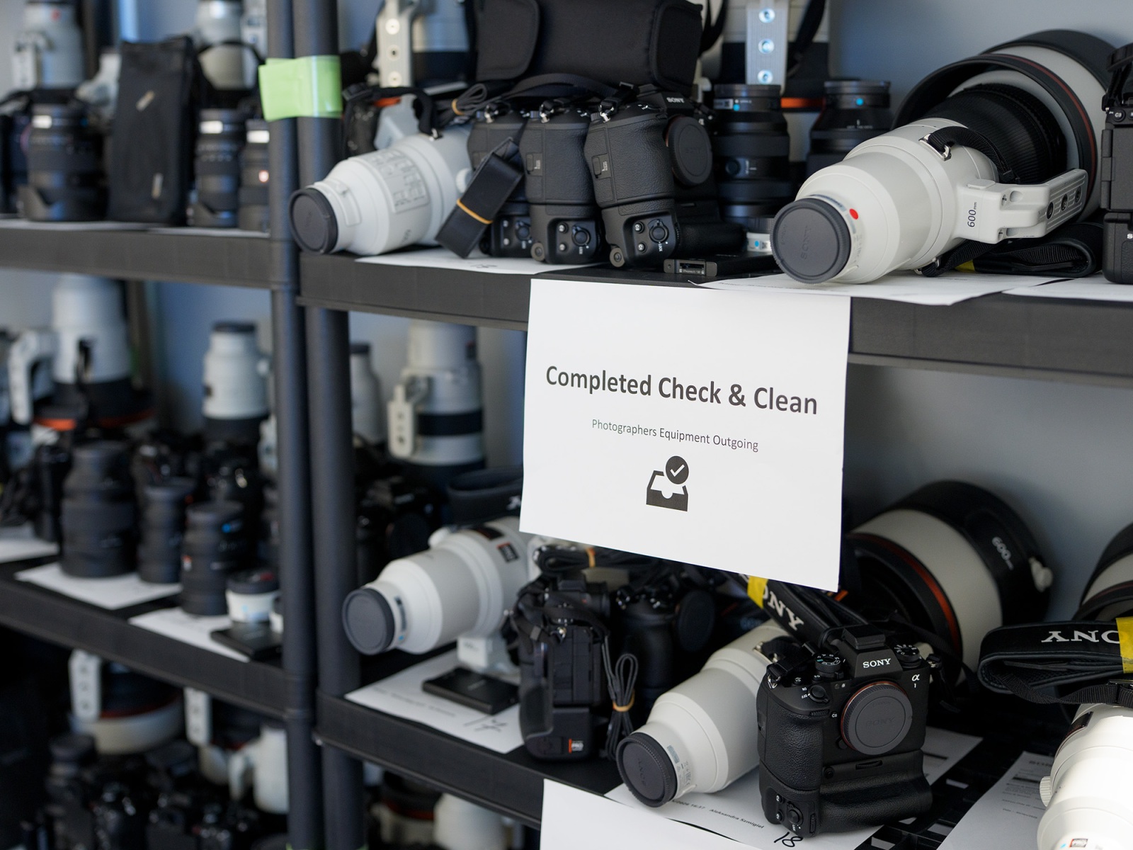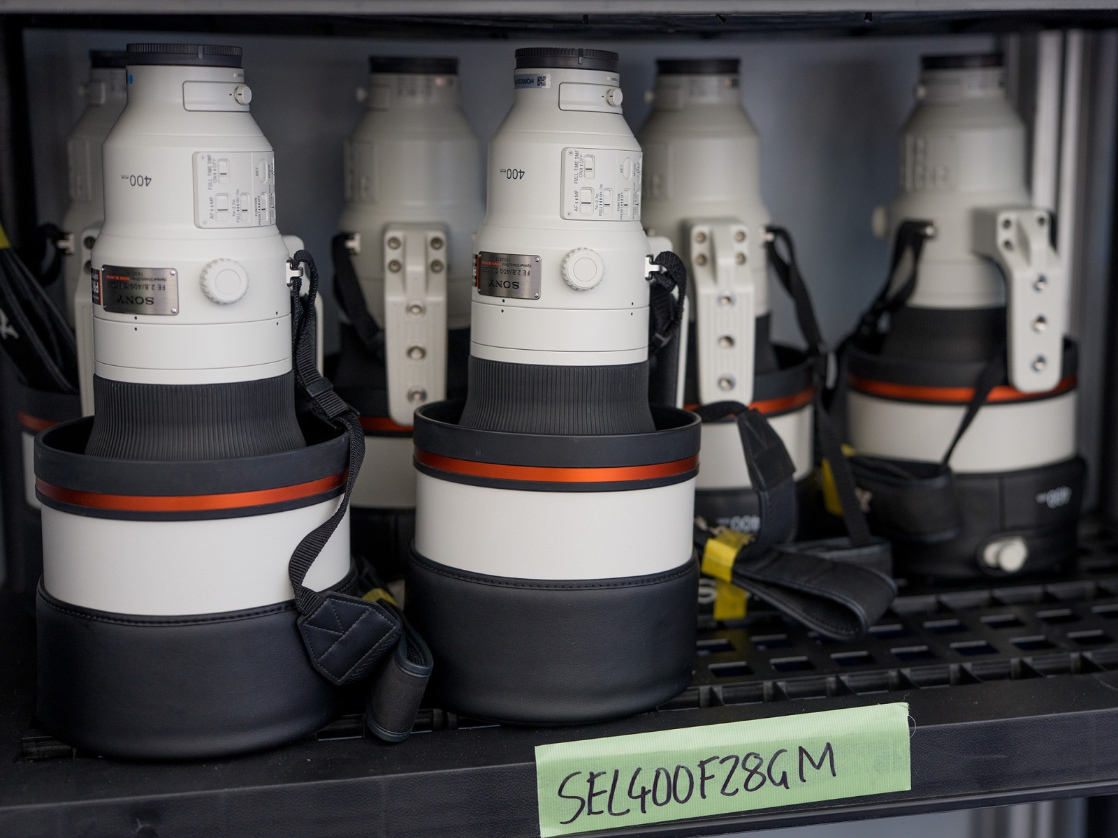 On loan in the Sony depot is the flagship Sony a1 II and a9 III, and other cameras and full-frame mirrorless lenses from 12-24mm f/2.8 and 14mm f/1.8 through to 400mm f/2.8 and 600mm f/4, the standard for sports photography, but also try the new 28-70mm f2, 50-150mm F2 and the 400-800mm zoom lens. It’s an impressive amount of gear shipped here for loan, with over 400 cameras, 1,200 lenses, and 60 PDT-FP1 portable data transmitters.
