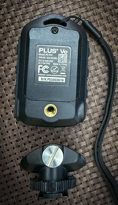 • The antenna runs through the arc at the top of the Plus Ve. I would not attach a metal clip or ring through this to secure the unit when mounting, as it may interfere with the radio performance or range. Use a zip tie loop, a lanyard, or another method that does not use a metal fastener. The Hotshoe on the Plus Ve can be removed to expose a ¼”-20 standard thread for mounting on extension poles or clamps.