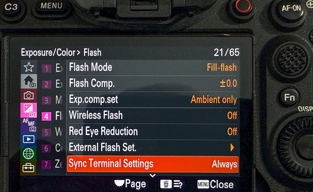Note: To use the Plus Ve mounted on the camera’s Multi Sync Shoe without a cable, on the Sony a9 III or the Sony a1 II, you will need to turn on “Flash Sync Terminal Settings to Always” (not Auto), and the Silent Shutter can be left “On”.